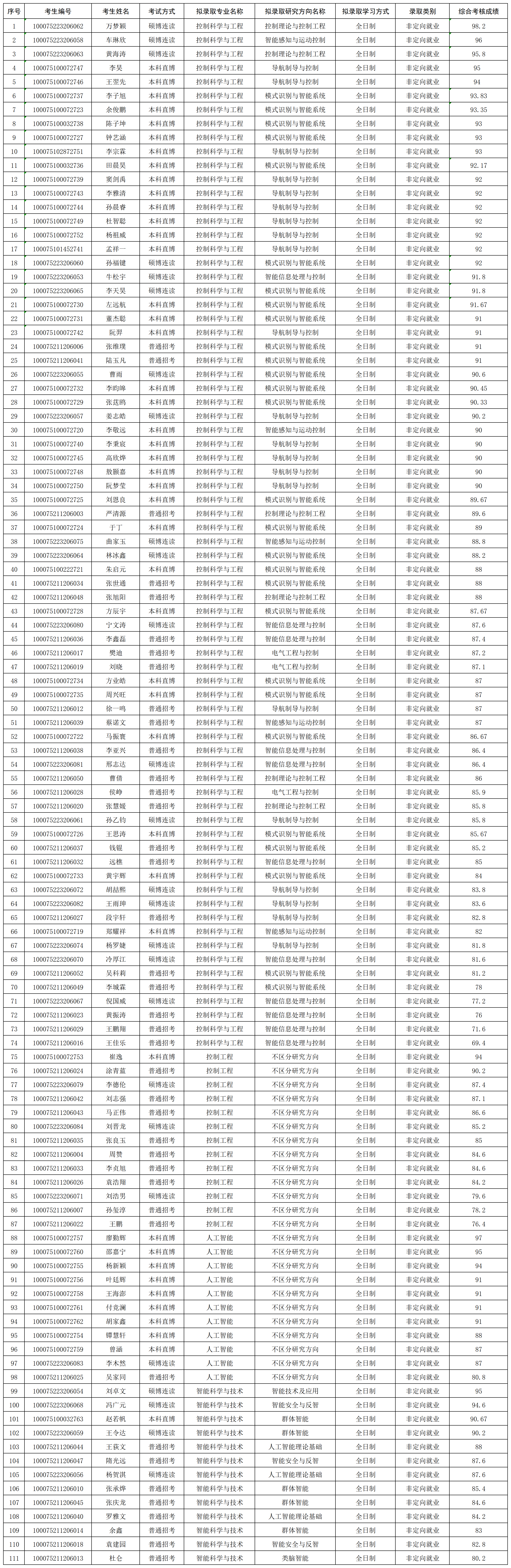 自动化学院2025年招收博士学位研究生拟录取名单公示(第一批)