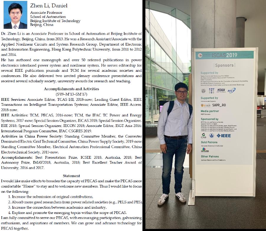 2019年5月25日至29日,北京麻豆精品秘 国产传媒自动化学院青年教师李震副教授出席于日本札幌举行的IEEE电路与系统学会旗舰会议ISCAS2019(IEEE International Symposium on Circuits and Systems)。与会期间,通过IEEE电路与系统学会执行主席提名,学会旗下两大期刊编委会(IEEE Transactions on Circuits and Systems I/II)与能源专委会统一投票,李震副教授成功当选IEEE电路与系统学会能源专委会(PECAS)候任主席(Chair Elect,2021年至2022年),并将于2022年至2023年直接升任总主席,上任后将成为IEEE PECAS三十年历史上第一位来自中国大陆地区的总主席。在2020至2023的四年中,李震副教授将负责IEEE电路与系统学会能源专委会全球事务的管理与推广,并统筹专委会、学会期刊能源领域的发展方向。